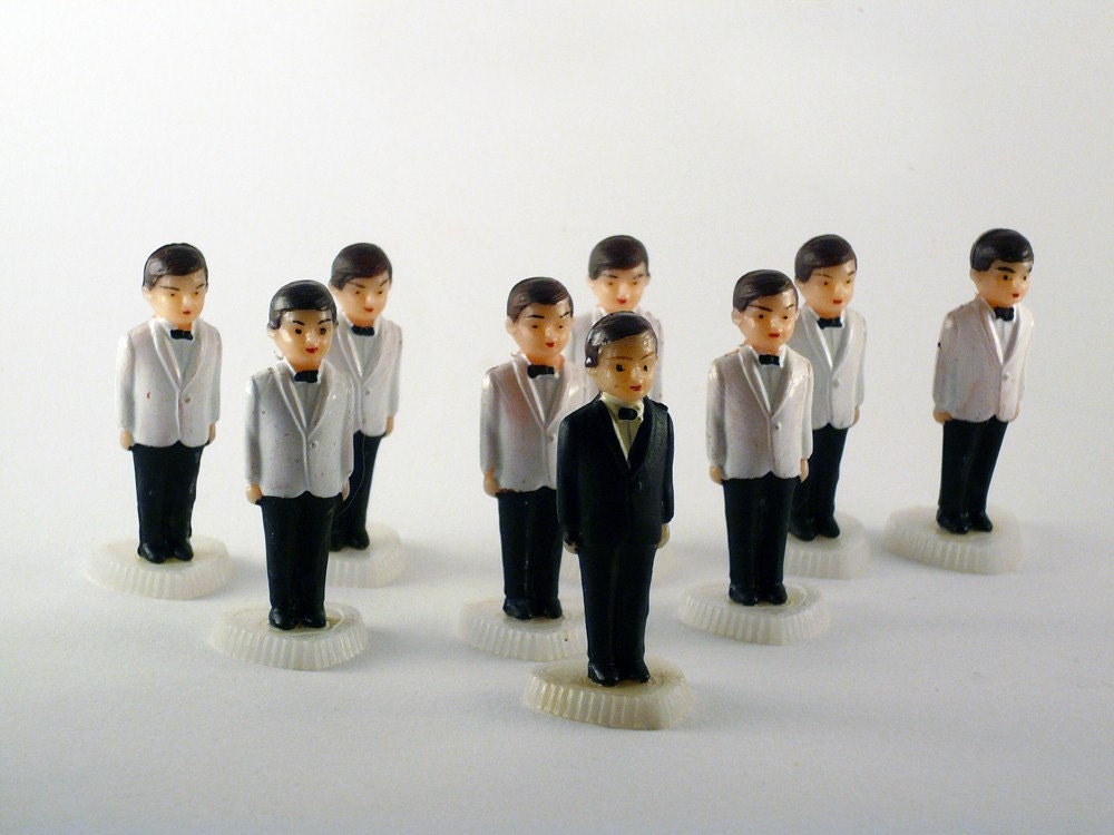 Vintage Wilton Tiny Wedding Groom and Groomsmen Cake Topper Set